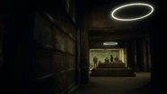 A partir desta área central estão vários conjuntos de escadas que levam a outras plataformas levantadas, incluindo uma área de armas e treinamento, e outros corredores que se conectam às outras partes do Instituto, como escritórios e quartos.